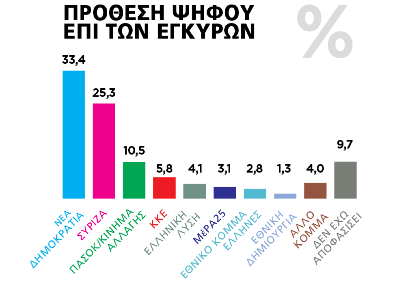 Τα ευρήματα αυτά, τα οποία λίγο ως πολύ είναι γνωστά σε όλες τις δημοσκοπήσεις των τελευταίων μηνών, έρχεται να επιβεβαιώσει η έρευνα της Μarc, η οποία διενεργήθηκε για λογαριασμό του «ΘΕΜΑτος» μεταξύ 16-21 Δεκεμβρίου.