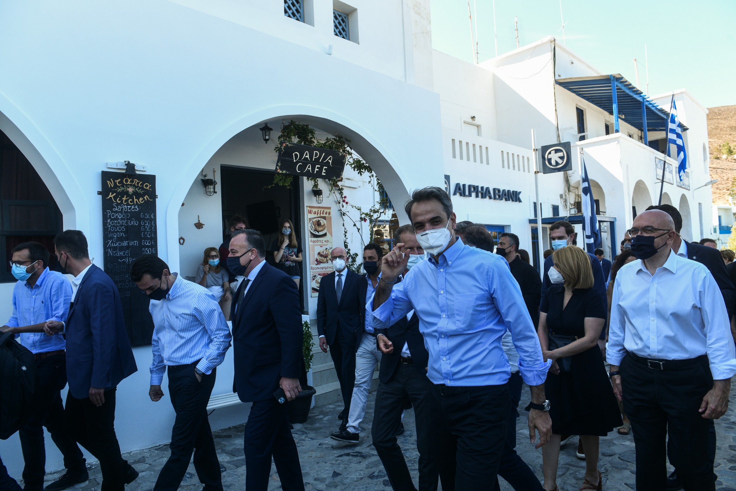 Ο Πρωθυπουργός Κυριάκος Μητσοτάκης ξεκίνησε την επίσκεψή του στο νησί με περιοδεία στη Χώρα της Αστυπάλαιας. Πρώτος σταθμός στο νησί ήταν ο παραδοσιακός φούρνος «Ηλιάνα» της Αστυπάλαιας, που φημίζεται για τα αρτοποιήματά του, έχει μετατραπεί σε ένα σύγχρονο εργαστήριο παραδοσιακών προϊόντων τα οποία εξάγει στην Ευρώπη και την Αμερική. Στη συνέχεια,παρακολούθησε την παράδοση 12 φορτιστών και οκτώ ηλεκτρικών αυτοκινήτων, δωρεά της Volkswagen, στην Αστυνομία, τη δύναμη του Λιμενικού και την Πολιτική Αεροπορία, ενώ δωρήθηκε ένα ασθενοφόρο.