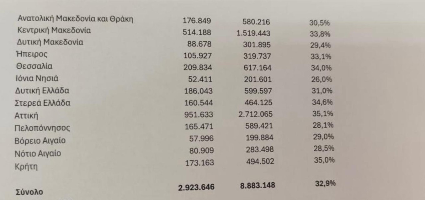 Η συμμετοχή ανά περιφέρεια όπως ανακοινώθηκε στις 17:30.