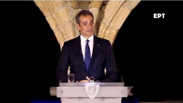 Σήμερα η Κύπρος, είπε στη συνέχεια ο κ. Μητσοτάκης, «με τη βοήθεια της Αθήνας είναι μέλος της Ευρωπαϊκής Ένωσης, άλλα η πληγή αιμορραγεί»