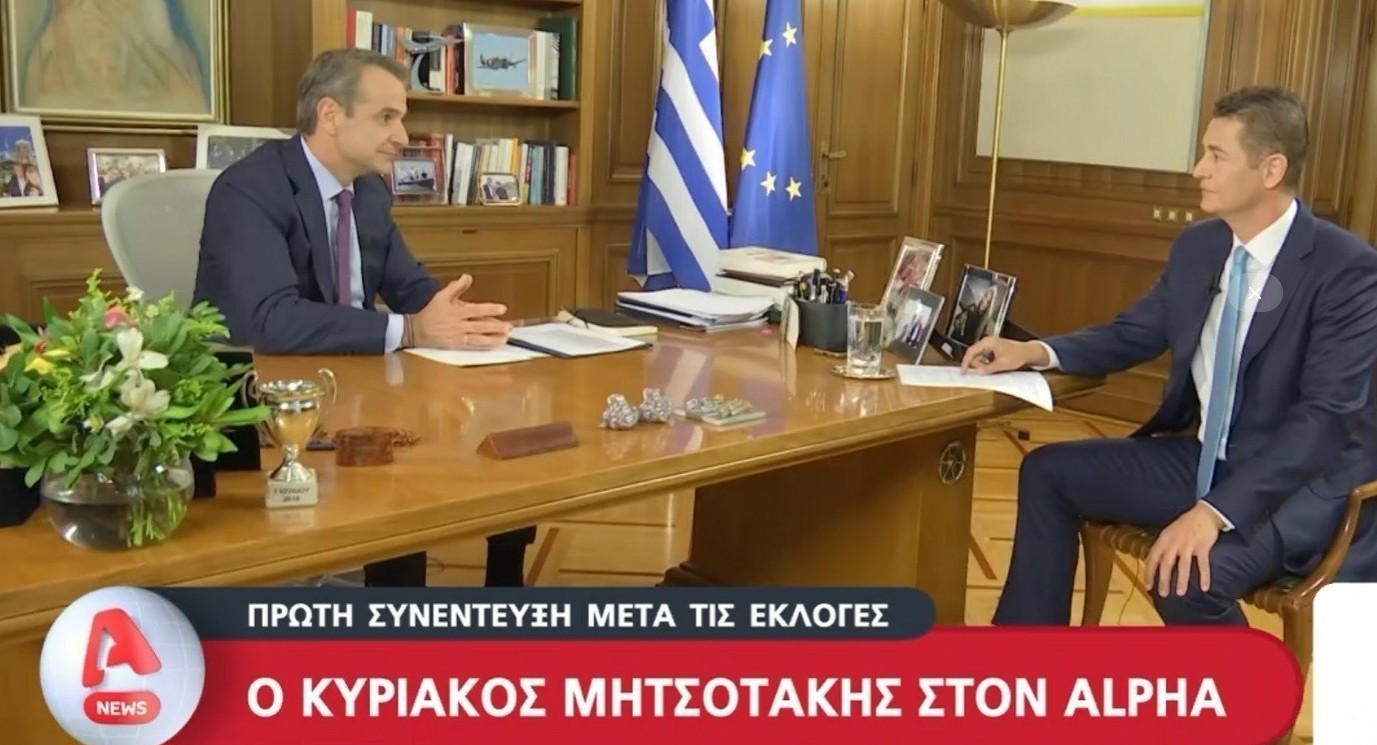 Συνέντευξη στο κεντρικό δελτίο ειδήσεων του Alpha και τον δημοσιογράφο Αντώνη Σρόιτερ, παραχώρησε το απόγευμα της Τετάρτης ο πρωθυπουργός και πρόεδρος της Νέας Δημοκρατίας Κυριάκος Μητσοτάκης.