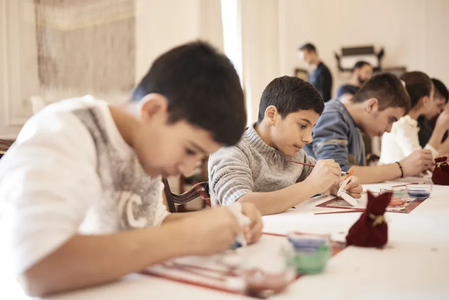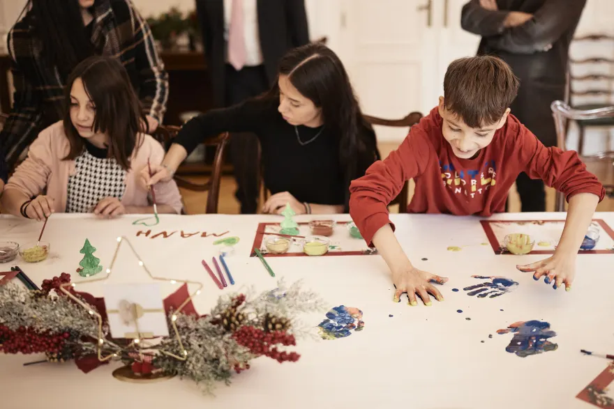 Στη συνέχεια, τα αγόρια και κορίτσια ζωγράφισαν και έκαναν χειροτεχνίες, με τη βοήθεια των συνοδών τους και παιδαγωγών από το κέντρο έκφρασης «Τα Χρώματα της Ίριδας», δίνοντας στον Πρωθυπουργό και στην κόρη του εορταστικές κάρτες.