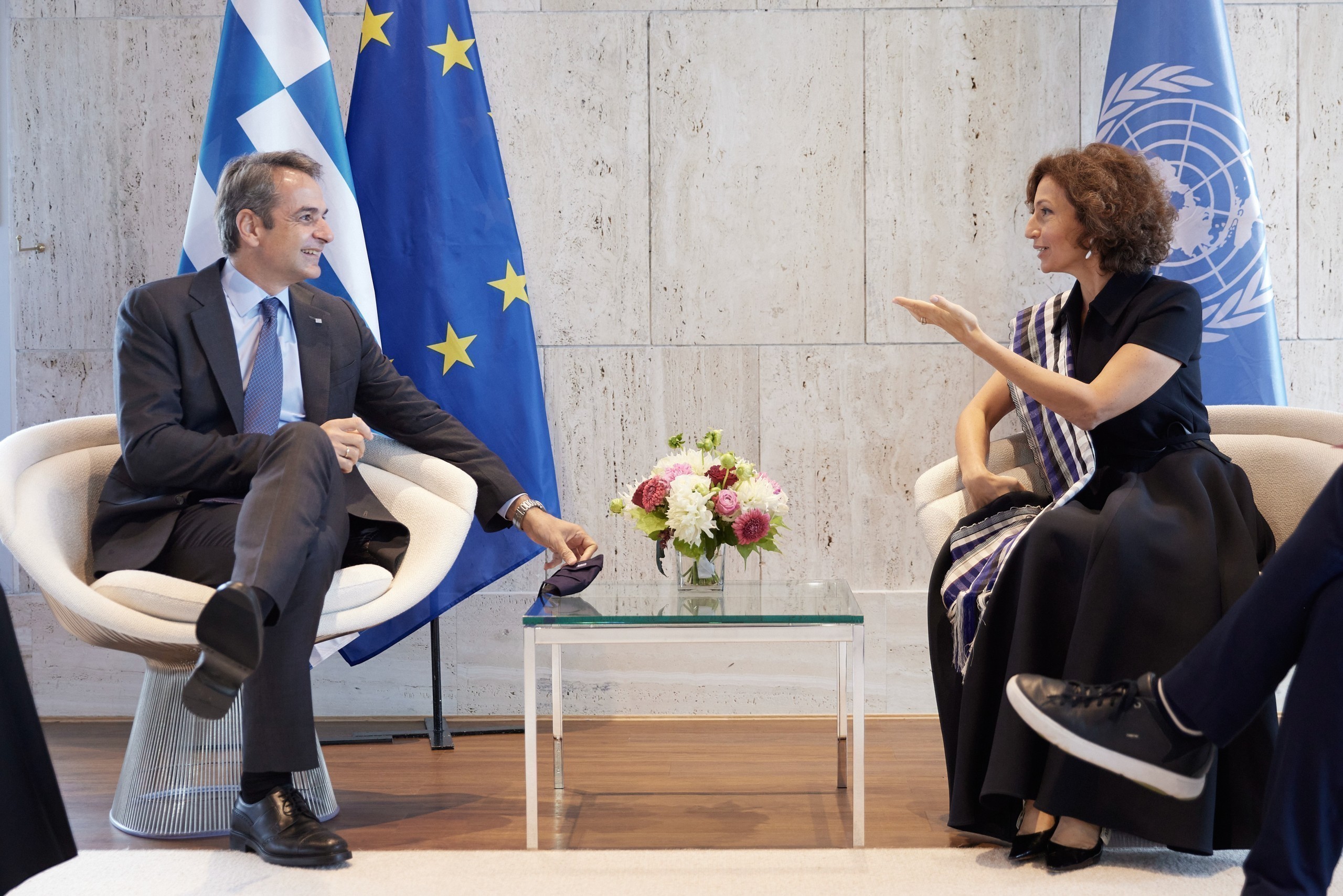 Νωρίτερα, ο Πρωθυπουργός συναντήθηκε με την Γενική Διευθύντρια της UNESCO, Audrey Azoulay, στην έδρα του οργανισμού στο Παρίσι.