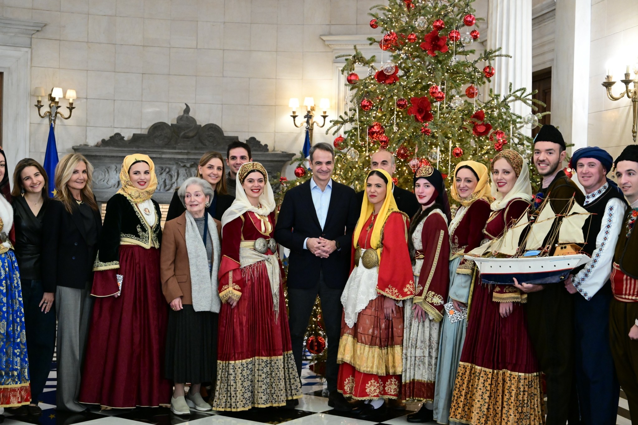 Κάλαντα και ευχές για τον πρωθυπουργό Κυριάκο Μητσοτάκη στο Μέγαρο Μαξίμου.