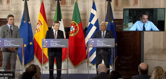 Η τετραμερής συνάντηση, στην οποία ο Έλληνας πρωθυπουργός συμμετείχε μέσω τηλεδιάσκεψης λόγω της ασθένειάς του με covid, φιλοξενήθηκε στην Ρώμη με οικοδεσπότη τον Μάριο Ντράγκι και την φυσική παρουσία των πρωθυπουργών της Ισπανίας Πέδρο Σάντσεθ και Πορτογαλίας Αντόνιο Κόστα.