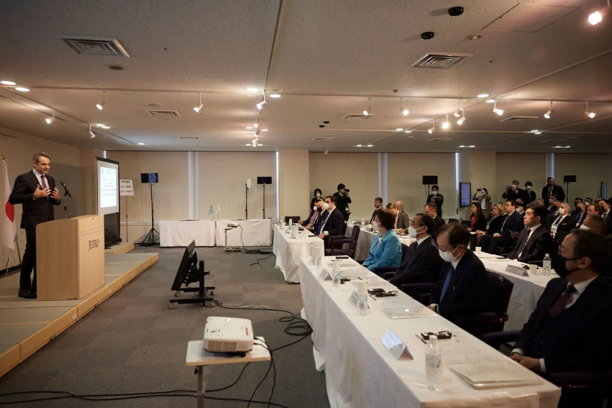 Ο πρωθυπουργός Κυριάκος Μητσοτάκης παρέστη και μίλησε στην Ελληνο-Ιαπωνική Επιχειρηματική Ημερίδα που διοργανώθηκε στα γραφεία του ιαπωνικού Οργανισμού Εξωτερικού Εμπορίου JETRO στο Τόκιο, με τη συμμετοχή του Enterprise Greece. Στη διάρκεια της εκδήλωσης υπεγράφη Μνημόνιο Κατανόησης μεταξύ του Enterprise Greece και του JETRO.