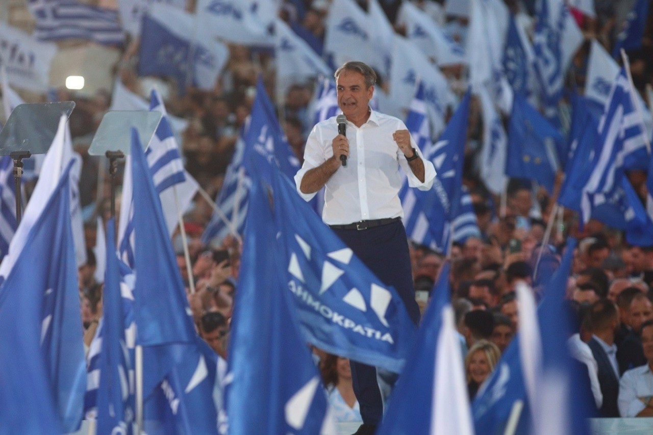 Την αυλαία μιας μακράς και παρατεταμένης προεκλογικής περιόδου έριξε το βράδυ της Παρασκευής ο Κυριάκος Μητσοτάκης, ο οποίος λίγο μετά τις 20:30 ανέβηκε στο βήμα της κεντρικής συγκέντρωσης της ΝΔ στο Σύνταγμα.