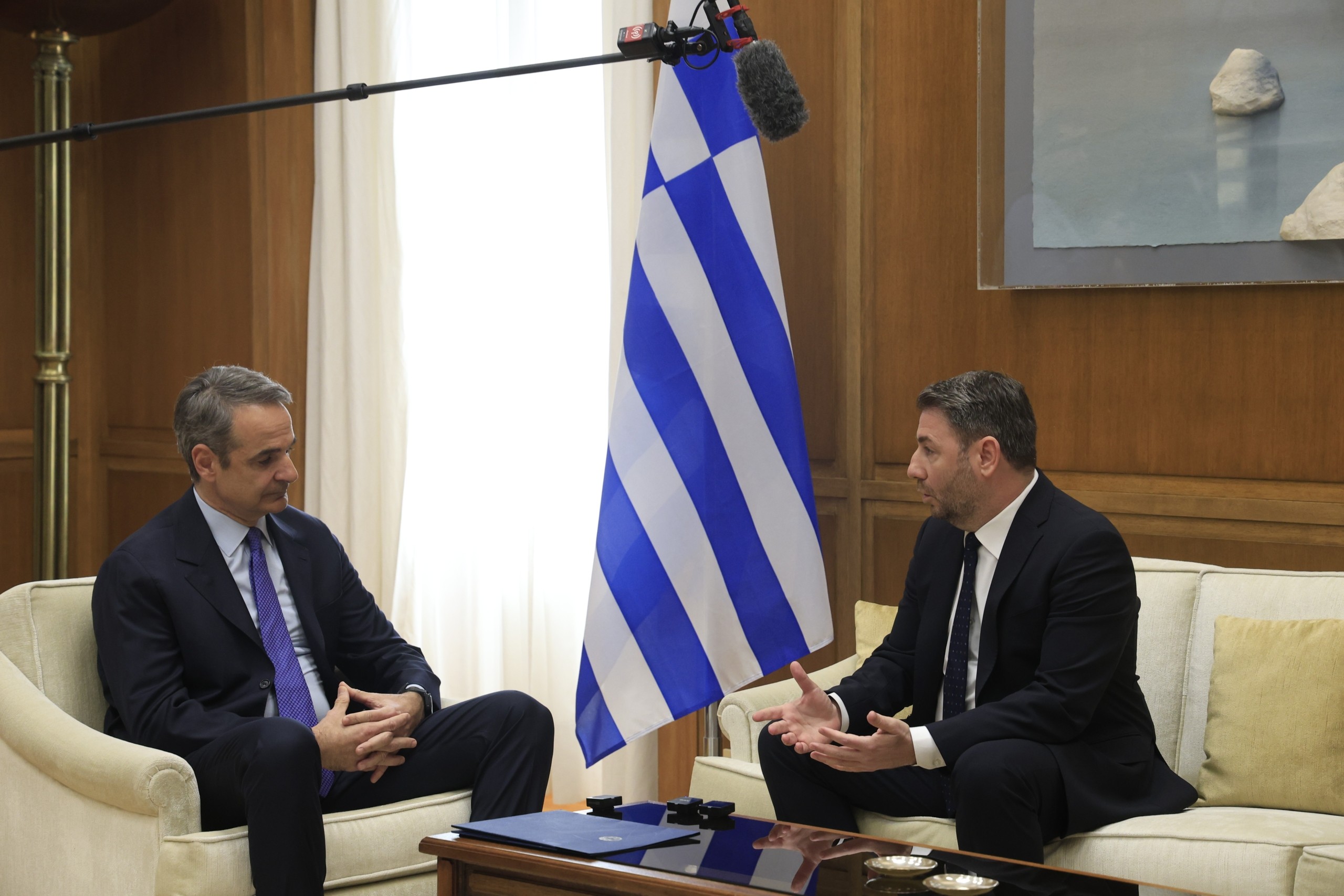 Στον διάλογο που είχαν μπροστά στις κάμερες πριν ξεκινήσει η κατ’ ιδίαν συνάντηση, ο Κυριάκος Μητσοτάκης αρχικά ευχαρίστησε τον πρόεδρο του ΠΑΣΟΚ «που ανταποκρίθηκατε στο αίτημα για ενημέρωση για κρίσιμες εξελίξεις στη Μέση Ανατολή που φαίνεται να δοκιμάζεται από νέο πόλεμο».