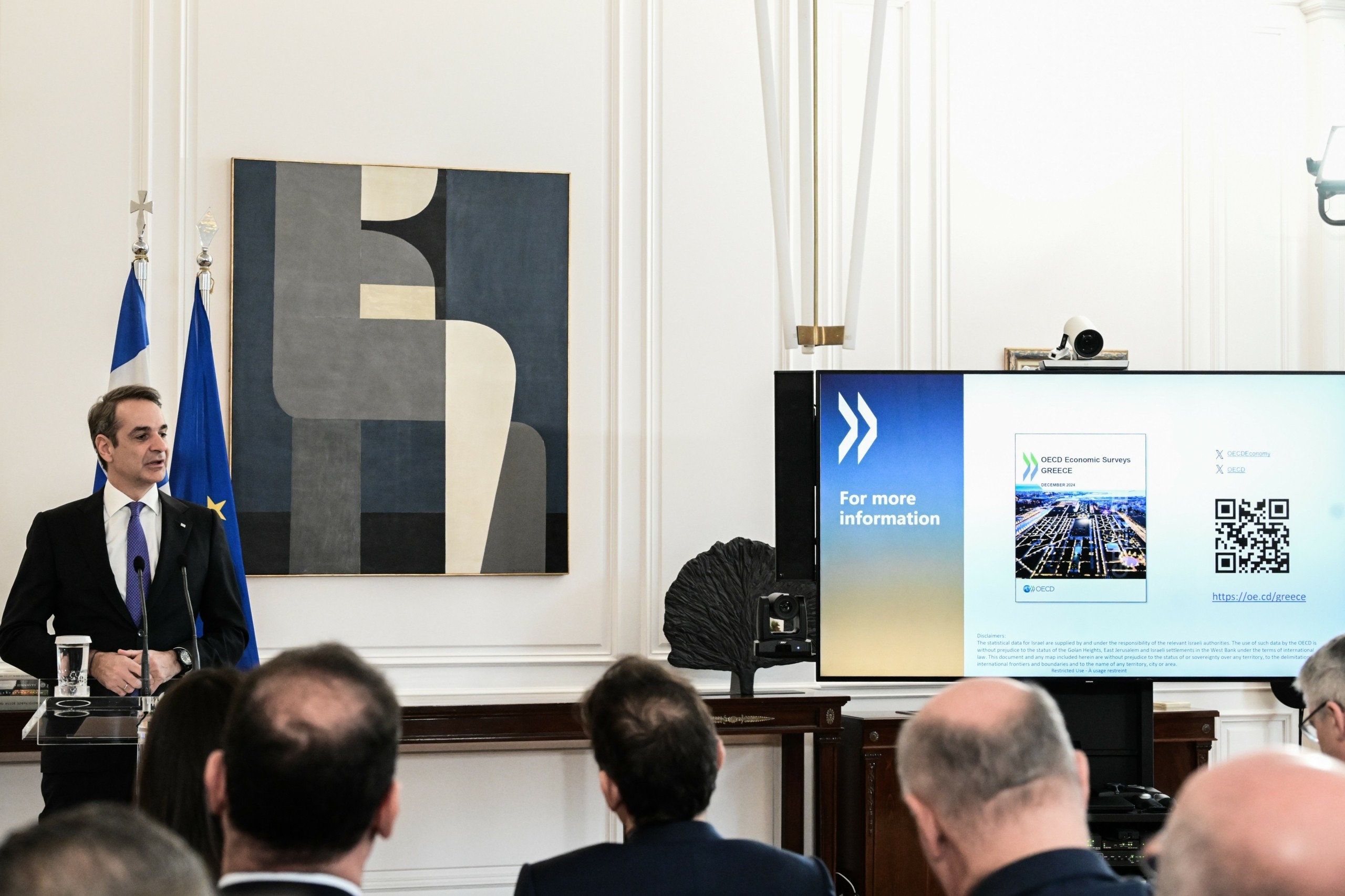 «Η έκθεση του ΟΟΣΑ παρουσιάζει τη σημαντική πρόοδο που έχει κάνει η Ελλάδα τα τελευταία 5 χρόνια αλλά παρουσιάζει και χρήσιμες προτάσεις για το μέλλον» σημείωσε ο Κυριάκος Μητσοτάκης στη συνάντηση που είχε σήμερα το πρωί με τον Γενικό Γραμματέα του Οργανισμού Οικονομικής Συνεργασίας και Ανάπτυξης (ΟΟΣΑ), Ματίας Κόρμαν.