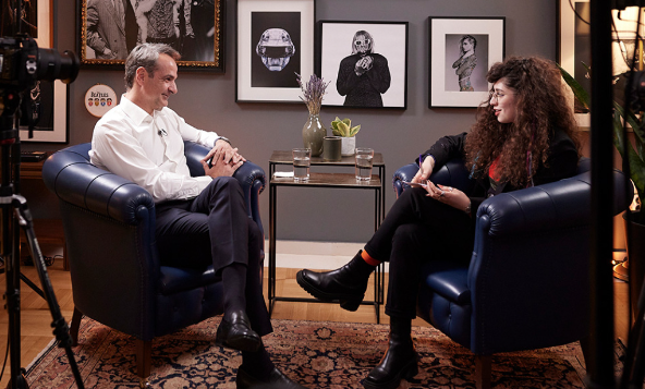 Κυριάκος Μητσοτάκης: Η αλήθεια είναι ότι δεν έχω και πολλές ευκαιρίες να μιλώ σε νέους για ζητήματα που αφορούν τη νεολαία, οπότε αποδέχτηκα με πολύ μεγάλη χαρά την πρότασή σου, παρακολουθώ τη δουλειά σου, τη θεωρώ πολύ ενδιαφέρουσα. Και είμαι σίγουρος ότι θα κάνουμε μία ζωντανή και ωραία συζήτηση.