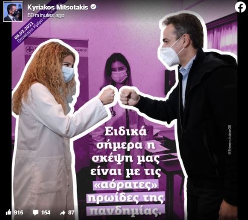 Ανάρτηση για την Παγκόσμια Ημέρα της Γυναίκας έκανε ο πρωθυπουργός, Κυριάκος Μητσοτάκης.