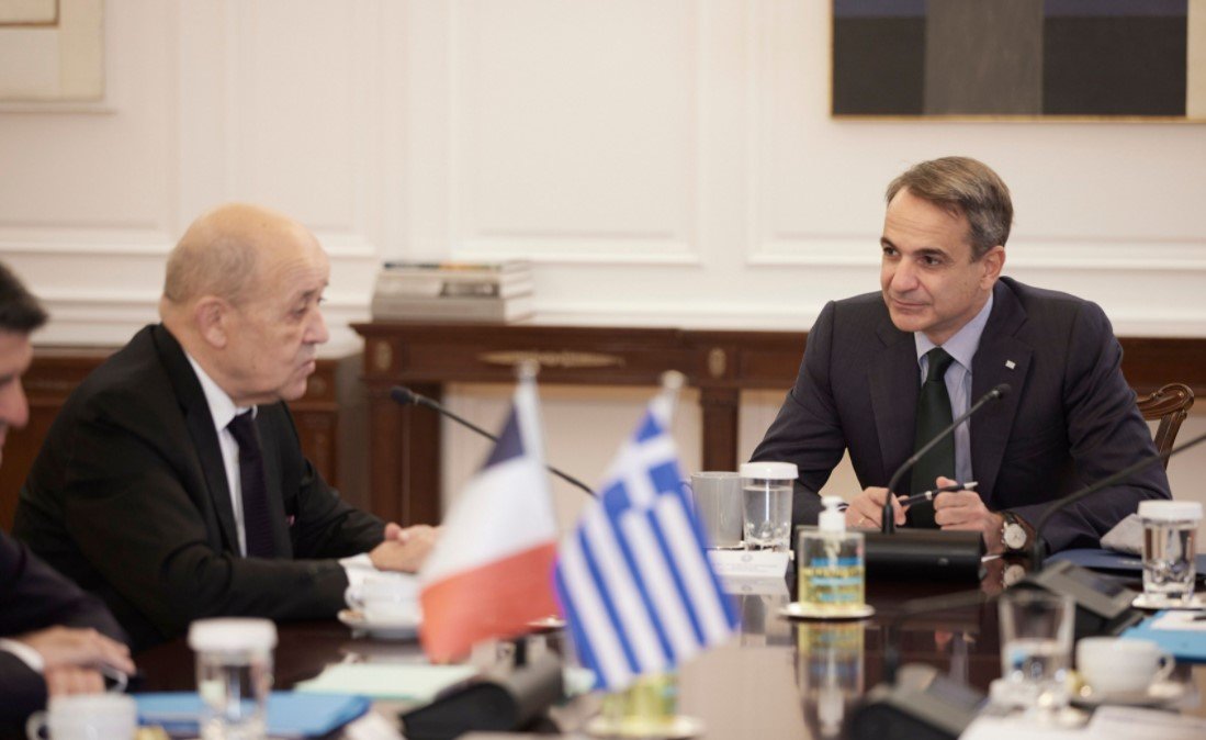Ο Πρωθυπουργός Κυριάκος Μητσοτάκης συναντήθηκε το πρωί στο Μέγαρο Μαξίμου με τον Υπουργό Εξωτερικών της Γαλλίας, Jean-Yves Le Drian, ο οποίος βρίσκεται στη χώρα μας ώστε να συμμετάσχει στις εργασίες της Τετραμερούς Συνόδου Υπουργών Εξωτερικών Ελλάδας, Αιγύπτου, Κύπρου και Γαλλίας.