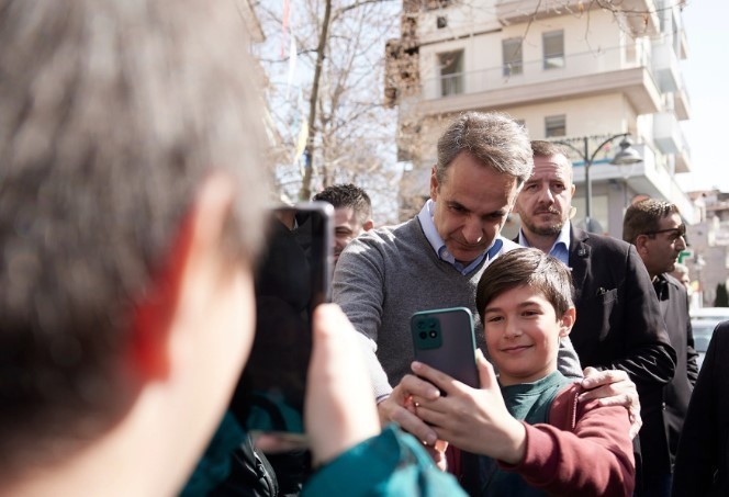 Ο κ. Μητσοτάκης έκανε χειραψίες με πολίτες, φωτογραφήθηκε μαζί τους και αντάλλαξε ευχές για τις Απόκριες και τη Σαρακοστή.