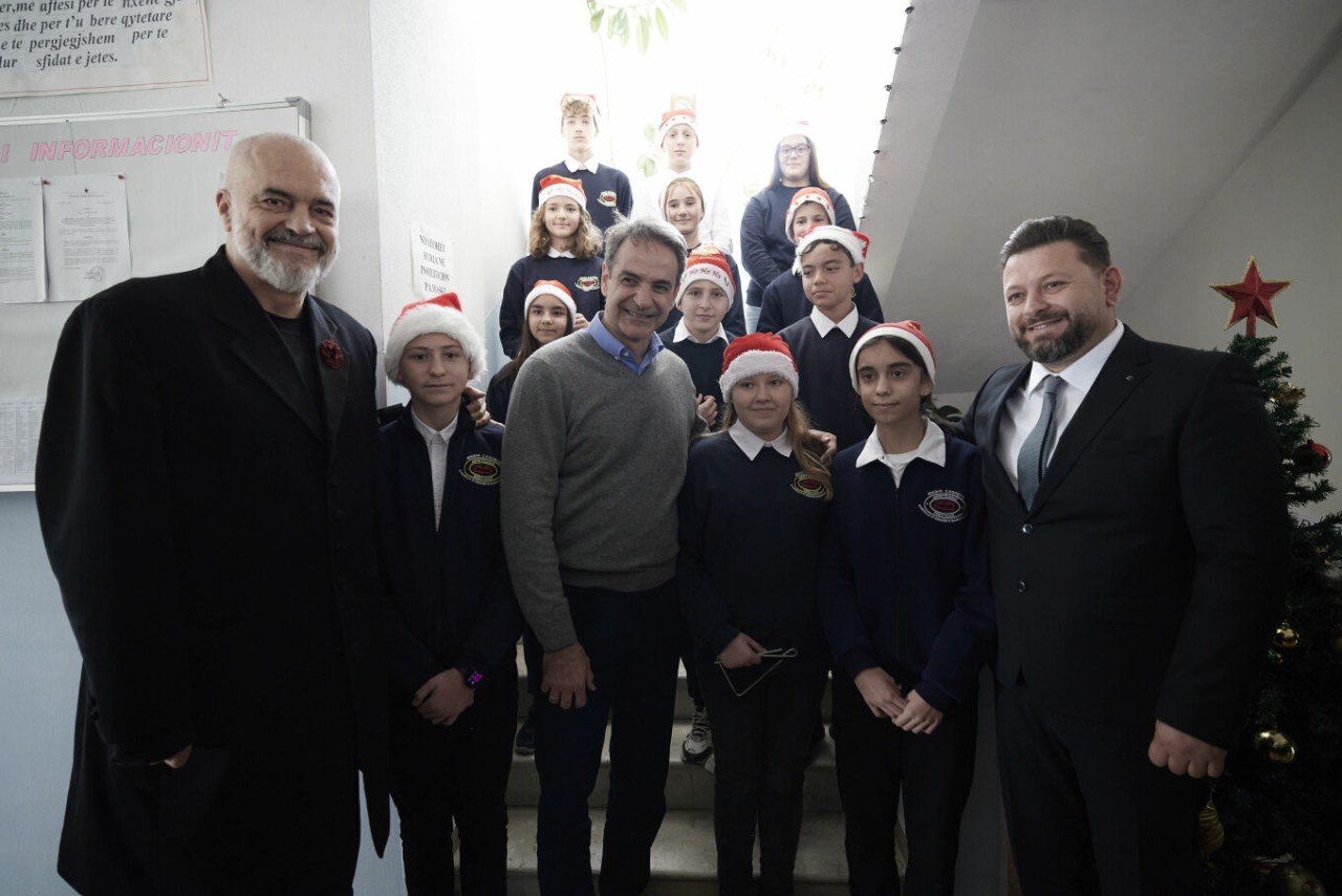 Στη συνέχεια, ο Κυριάκος Μητσοτάκης και ο Edi Rama, επισκέφθηκαν το Ενιαίο Μεσαίο Σχολείο Δερβιτσάνης, όπου ξεναγήθηκαν στις εγκαταστάσεις και είχαν την ευκαιρία να συνομιλήσουν με παιδιά και να ακούσουν τα χριστουγεννιάτικα κάλαντα. Στο σχολείο διδάσκεται η ελληνική γλώσσα. Αποτελείται από δημοτικό, γυμνάσιο και λύκειο, ενώ φοιτούν συνολικά 113 παιδιά. Χώροι του έχουν διακοσμηθεί από ομάδα Ελλήνων γραφιστών.