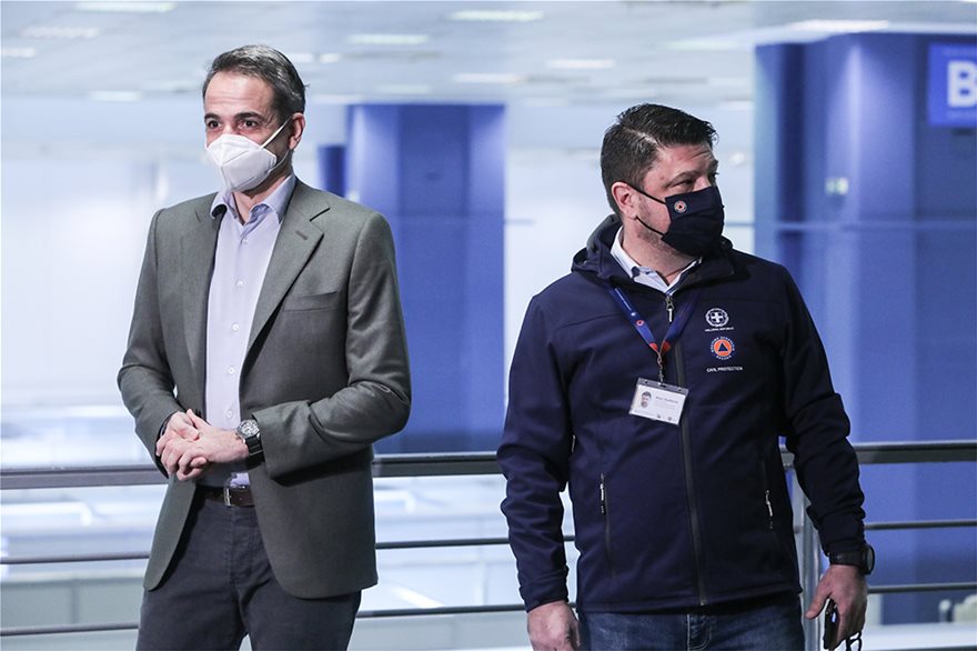 Τον Πρωθυπουργό υποδέχτηκαν και συνόδευσαν κατά την επίσκεψή του στον εμβολιαστικό σταθμό ο Υφυπουργός Προστασίας του Πολίτη, αρμόδιος για την Πολιτική Προστασία και τη Διαχείριση Κρίσεων, Νίκος Χαρδαλιάς, ο Αρχηγός του Γενικού Επιτελείου Εθνικής Άμυνας, Στρατηγός Κωνσταντίνος Φλώρος και ο Γενικός Γραμματέας Πρωτοβάθμιας Φροντίδας Υγείας, Μάριος Θεμιστοκλέους.