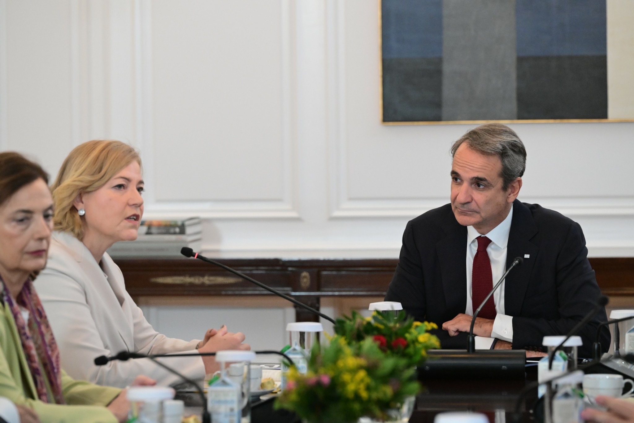 Τέσσερα θέματα που αντιστοιχούν σε ισάριθμους συναγερμούς σε εθνικό αλλά και σε ευρωπαϊκό επίπεδο, κυριάρχησαν στην ατζέντα των συζητήσεων που είχε ο Κυριάκος Μητσοτάκης με την Εκτελεστική Αντιπρόεδρο της Ευρωπαϊκής Επιτροπής αρμόδια για την Τεχνολογική Κυριαρχία, την Ασφάλεια και τη Δημοκρατία, Henna Virkkunen.