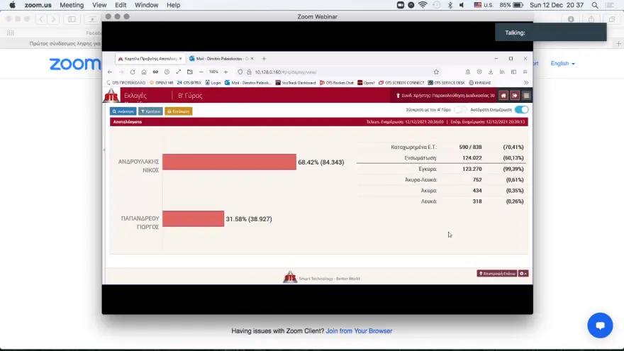 Στο 38% των ψήφων που έχουν καταμετρηθεί, είναι μπροστά ο Νίκος Ανδρουλάκης με 69%, έναντι 31% του Γιώργου Παπανδρέου, ενώ Σε τρία εκλογικά κέντρα ακυρώθηκε η κάλπη: 1. Αγχίαλος (Βόλος), 2. Ερέτρια, 3. Ορχόμενος (που υπήρχε και επεισόδιο).
