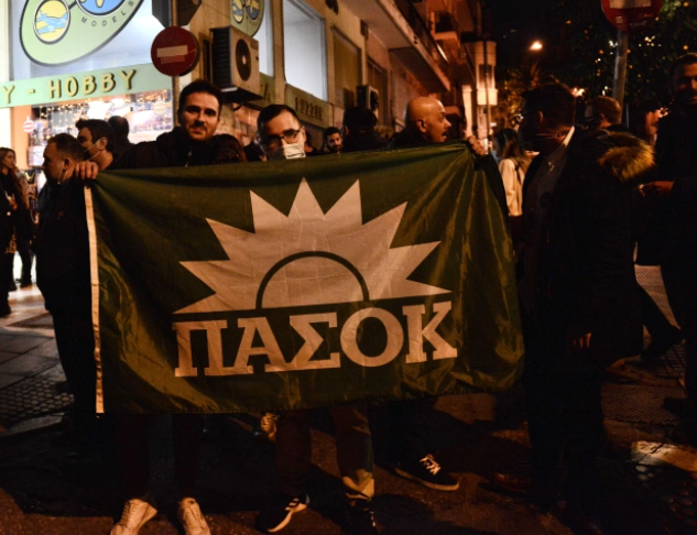 Πανηγυρισμοί έξω από το γραφείο του νέου προέδρου του ΚΙΝΑΛ Νίκου Ανδρουλάκη στην οδό Ιπποκράτους