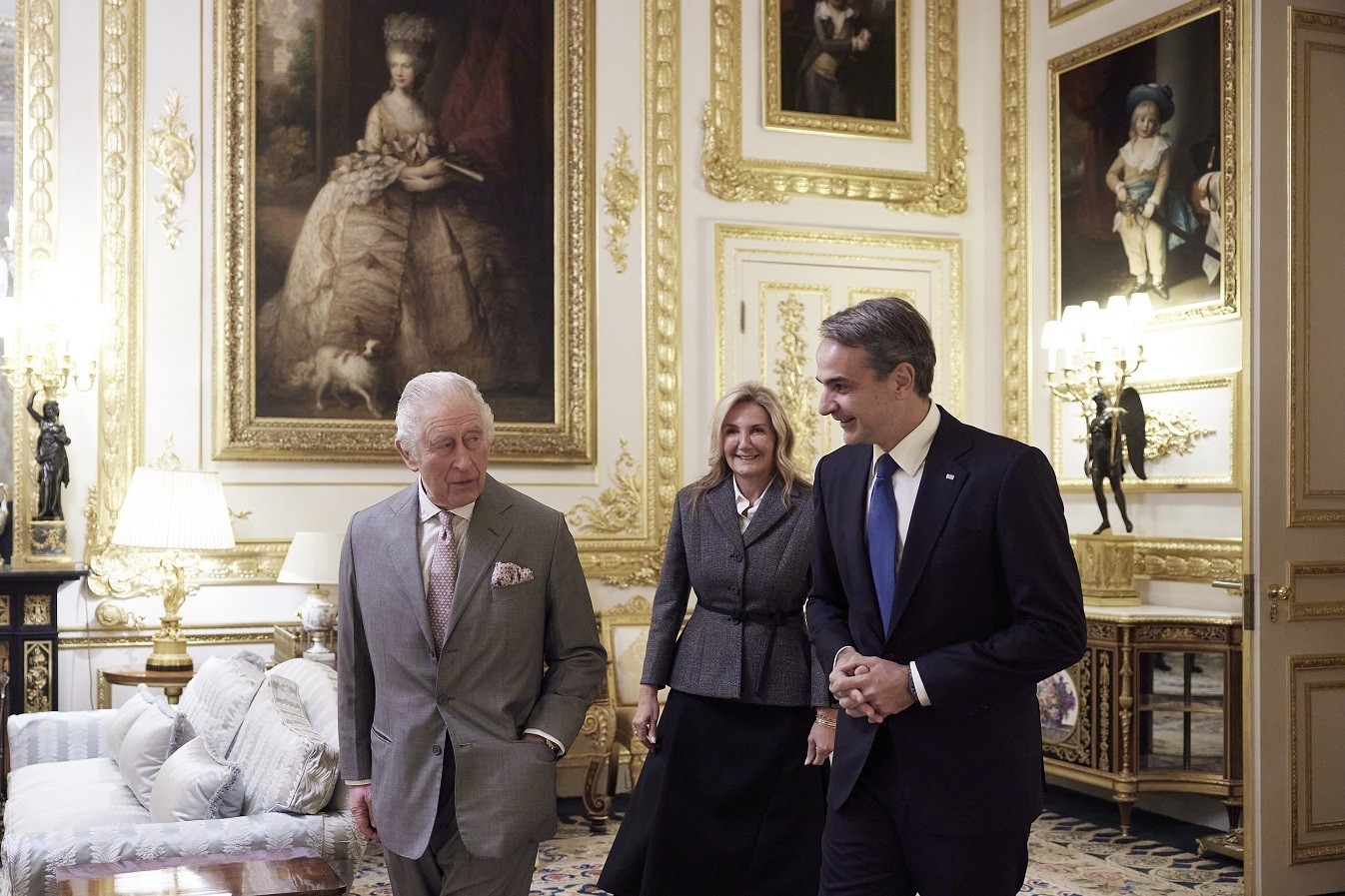 Ολοκληρώθηκε η ιδιωτική συνάντηση του βασιλιά Καρόλου της Αγγλίας με τον πρωθυπουργό Κυριάκο Μητσοτάκη, στο κάστρο του Γουίνδσορ, όπου ο μονάρχης υποδέχεται prive αρκετούς καλεσμένους του. Παρούσα ήταν και η σύζυγος του πρωθυπουργού, Μαρέβα Γκραμπόφσκι – Μητσοτάκη. Σημειώνεται ότι η συνάντηση πραγματοποιήθηκε σε θερμό κλίμα.