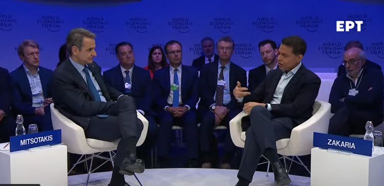 Συνέντευξη στον δημοσιογράφο του CNN Fareed Zakaria παραχώρησε ο Έλληνας πρωθυπουργός Κυριάκος Μητσοτάκης στο Παγκόσμιο Οικονομικό Φόρουμ, στο Νταβός την Πέμπτη 19 Ιανουαρίου.