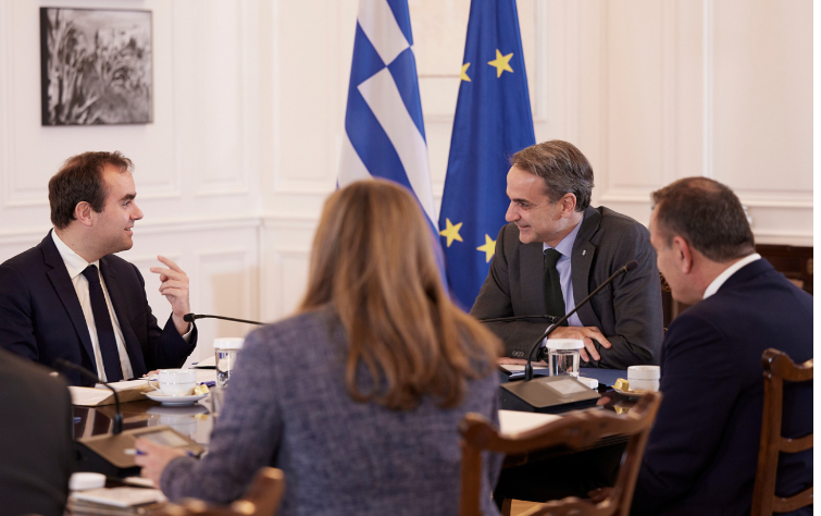 Ο πρωθυπουργός Κυριάκος Μητσοτάκης συναντήθηκε με τον υπουργό Άμυνας της Γαλλίας, Σεμπάστιαν Λεκορνού επ’ ευκαιρία της επίσκεψής του στην Αθήνα και της συνάντησής του με τον Υπουργό Εθνικής Άμυνας Νίκο Παναγιωτόπουλο.