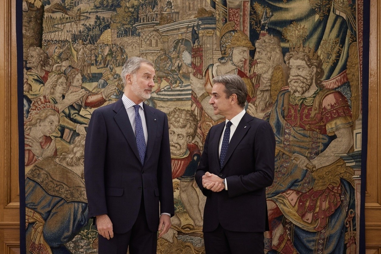 Επίσκεψη στην Ισπανία πραγματοποιεί ο πρωθυπουργός Κυριάκος Μητσοτάκης. Ο Έλληνας πρωθυπουργός συναντήθηκε νωρίτερα με τον Ισπανό ομόλογό του Πέδρο Σάντσεθ και αμέσως μετά μετέβη στο Βασιλικό Ανάκτορο Θαρθουέλα όπου έγινε δεκτός από τον Βασιλιά της Ισπανίας Φελίπε.