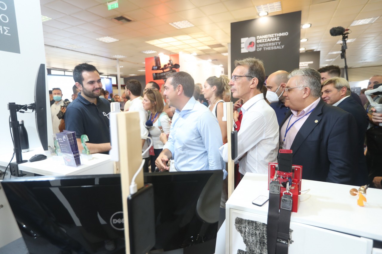 Ο πρόεδρος του ΣΥΡΙΖΑ δέχθηκε τιμητική πλακέτα από το περίπτερο Ηρακλής και θα ακολουθήσει ξενάγηση στην Πυροσβεστική.