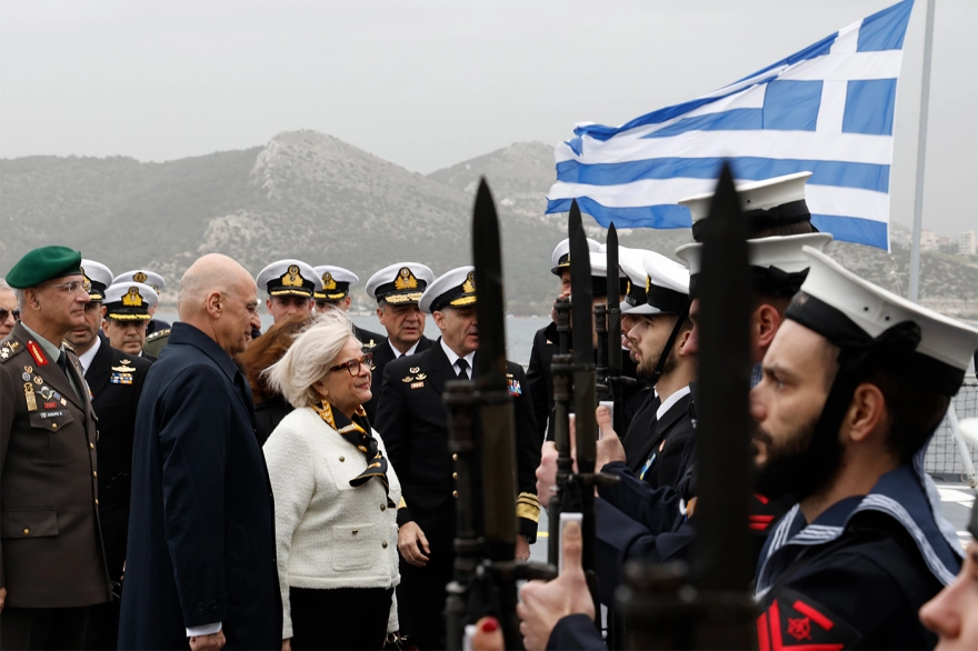 «Σήμερα γράφεται μία νέα σελίδα της ναυτικής συνεργασίας Ελλάδας και Γαλλίας», είπε η Γαλλίδα υπουργός αναφερόμενη στη φρεγάτα «Κίμων».