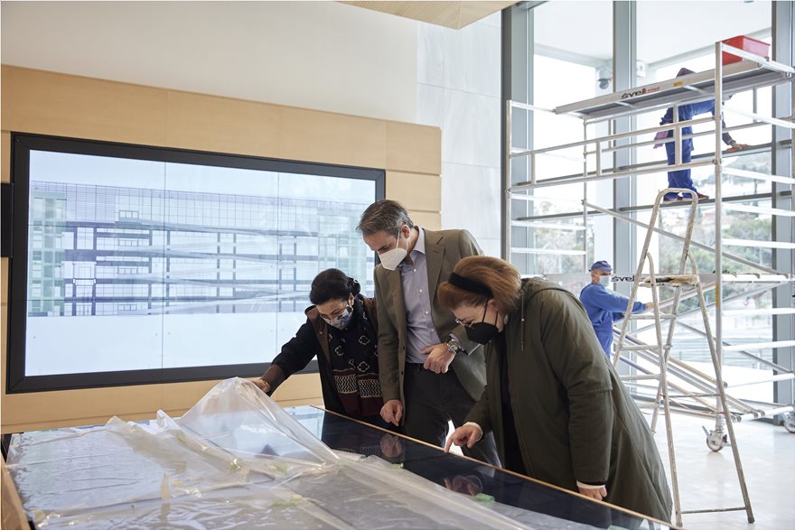 Ο Πρωθυπουργός, συνοδευόμενος από την Υπουργό Πολιτισμού Λίνα Μενδώνη, ξεναγήθηκε από τη Διευθύντρια της Εθνικής Πινακοθήκης Μαρίνα Λαμπράκη-Πλάκα στον πλήρως αναβαθμισμένο χώρο που έχει πλέον υπερδιπλάσιο εμβαδόν σε σχέση με το παλιό κτίριο, ξεπερνώντας τα 20.700 τετραγωνικά μέτρα.