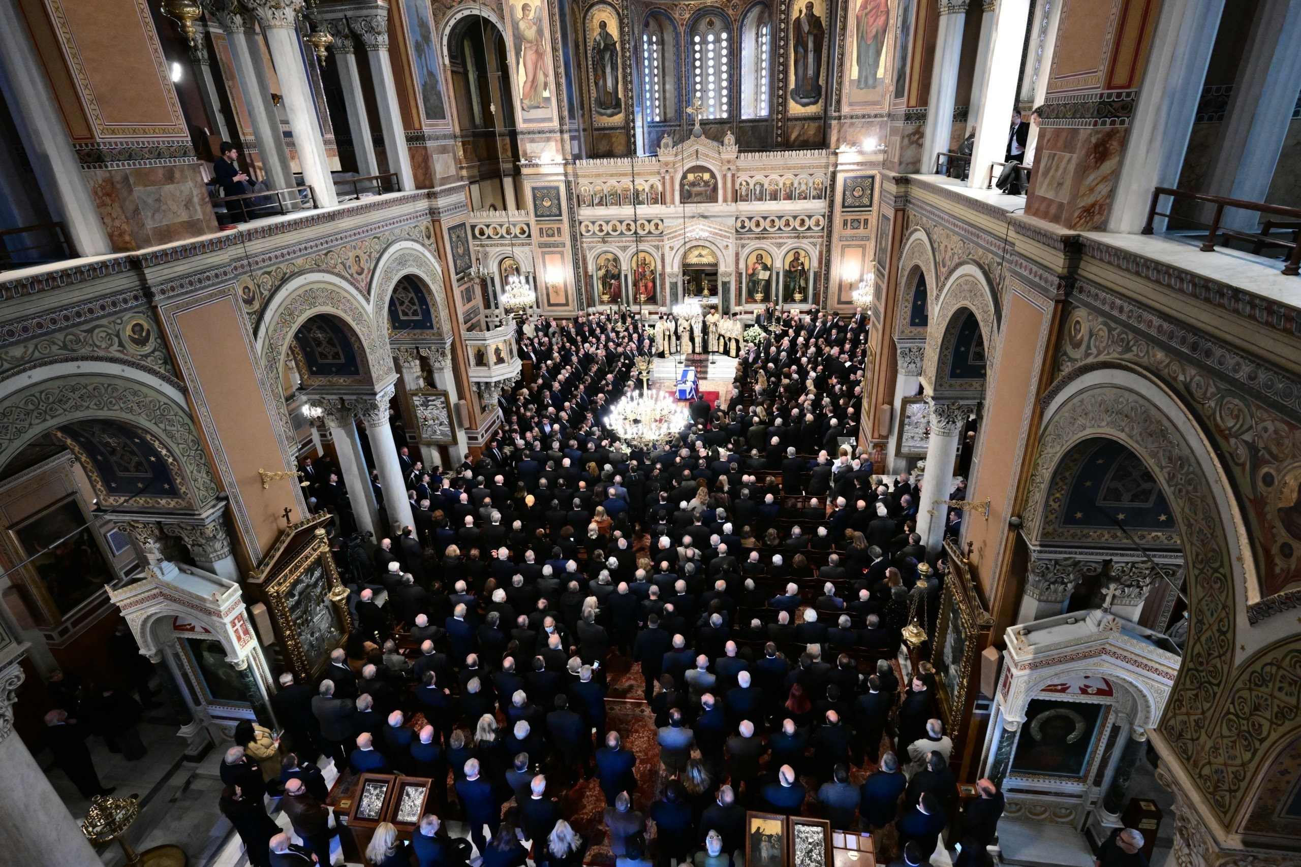 Σύσσωμος ο πολιτικός, διπλωματικός και πανεπιστημιακός κόσμος στο τελευταίο αντίο στον Κώστα Σημίτη, τον πρώην πρωθυπουργό και πρόεδρο του ΠΑΣΟΚ, στη Μητρόπολη Αθηνών.