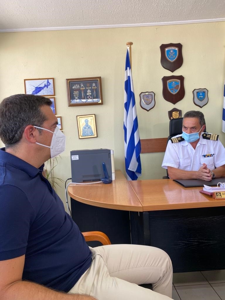 Από την πλευρά του, ο λιμενάρχης Αιδηψού, κ. Δανίκας, κατά την άφιξη του κ. Τσίπρα στην Αιδηψώ περιέγραψε πώς έγινε η επιχείρηση απεγκλωβισμού 85 κατοίκων, εκ των οποίων οι περισσότεροι ηλικιωμένοι και 6 μικρά παιδιά, που είχαν βρει καταφύγιο σε παραλία στις Ροβιές για να γλιτώσουν από την πυρκαγιά.