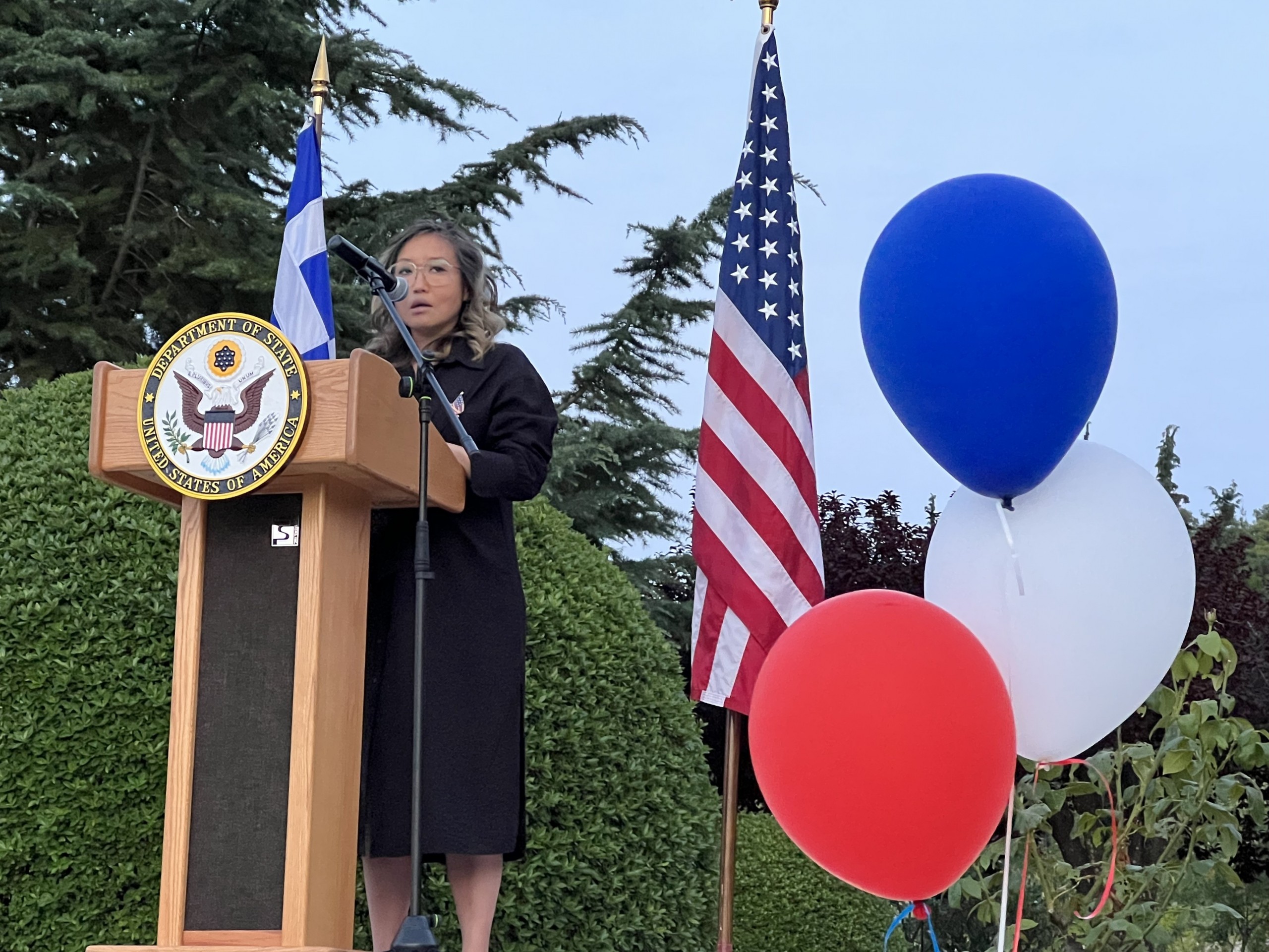 Τόσο ο πρέσβης των ΗΠΑ όσο και η γενική πρόξενος ευχαρίστησαν όλους όσοι ανταποκρίθηκαν στην πρόσκληση και έδωσαν το «παρών» στην αποψινή δεξίωση, καθώς και το Κολλέγιο Ανατόλια και τον πρόεδρό του Πάνο Βλάχο για την «ανεκτίμητη συνεργασία», και ύψωσαν το ποτήρι τους με μια πρόποση για την ελληνική φιλοσοφία και τις έννοιες που ενέπνευσαν τους ιδρυτές του αμερικανικού κράτους «και συνεχίζουν να εμπνέουν το έργο μας σήμερα». Νωρίτερα, χαιρετισμό απηύθυνε και ο πρόεδρος του Κολλεγίου Ανατόλια Πάνος Βλάχος.