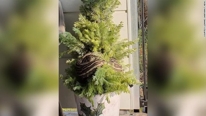 Συγκεκριμένα, όταν η γυναίκα επέστρεψε σπίτι της, βρήκε έναν πύθωνα τριών μέτρων τυλιγμένο στο χριστουγεννιάτικο δέντρο της.