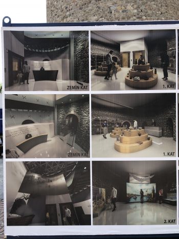 Στις φωτογραφίες που παραθέτει φαίνονται οι μακέτες που έχει αναρτήσει το καθεστώς Ερντογάν που παρουσιάζουν το εσωτερικό του μνημείου μετά του τέλος της παρέμβασης.