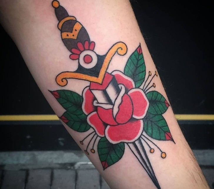 Αυτό το φαινομενικά ρομαντικό τατουάζ γίνεται στη φυλακή μόνο στην περίπτωση που ένα άτομο πηγαίνει στη φυλακή πριν γίνει ενήλικας. Ένα τριαντάφυλλο χωρίς ένα στιλέτο σημαίνει ότι ένα άτομο ενηλικιώθηκε (έγινε 18 ετών) ενώ ήταν ήδη στη φυλακή. Αυτοί οι άνθρωποι αντιμετωπίζονται ως πεπειραμένοι κρατούμενοι και αν κάποιος έχει αυτό το τατουάζ και ποτέ δεν καταδικάστηκε, μπορεί να οδηγήσει σε μια σύγκρουση.