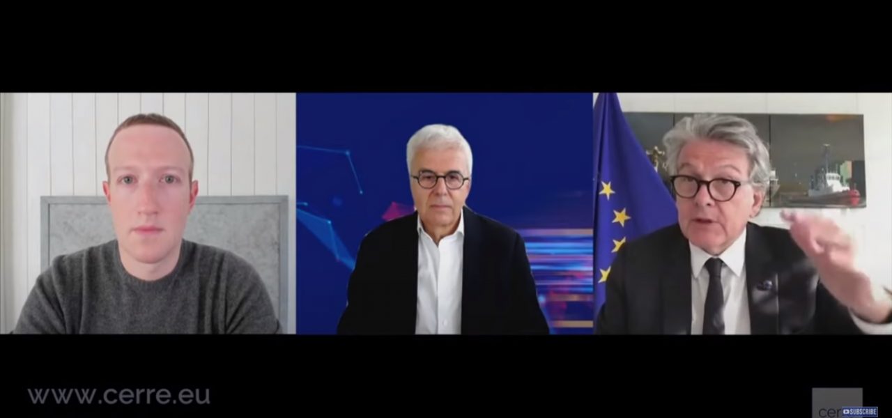 Ένα ευρωπαϊκό think-tank διοργάνωσε μια ζωντανή συζήτηση με τον ευρωπαίο Επίτροπο Εσωτερικής Αγοράς, Τιερί Μπρετόν, και τον CEO της Facebook, Μαρκ Ζούκερμπεργκ CEO του Facebook. Τη συζήτηση συντόνιζε ο γενικός διευθυντής του ευρωπαϊκού think-tank (CERRE).