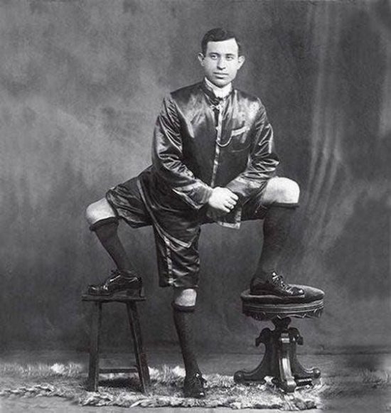 Ο Francesco Lentini γεννήθηκε το 1889 με 3 πόδια, 2 ανδρικά γεννητικά όργανα και ένα υποτυπώδες πόδι στο γόνατο του τρίτου ποδιού. Ήταν το 12ο παιδί μιας οικογένειας. Συνολικά, είχε 3 πόδια, 4 πατούσες, 16 δάχτυλα ποδιού και δύο σετ από λειτουργικά ανδρικά γεννητικά όργανα. Τα «έξτρα» μέρη του σώματος ήταν ουσιαστικά ότι υπήρχε από ένα συνδεδεμένο δίδυμο που προεξείχε από τη δεξιά πλευρά του σώματος του.