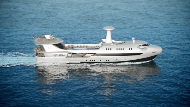 Στην περίπτωση αυτή είναι λες κι ο κόσμος των σούπερ γιοτ αποφάσισε να συναντήσει τον κόσμο της αεροπλοΐας με αυτό το μοναδικό σκάφος που συνδυάζει τόσο ναυτικά όσο και… αεροπορικά χαρακτηριστικά.