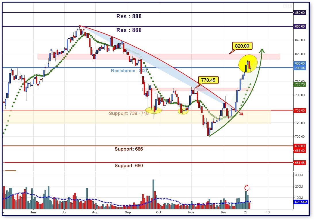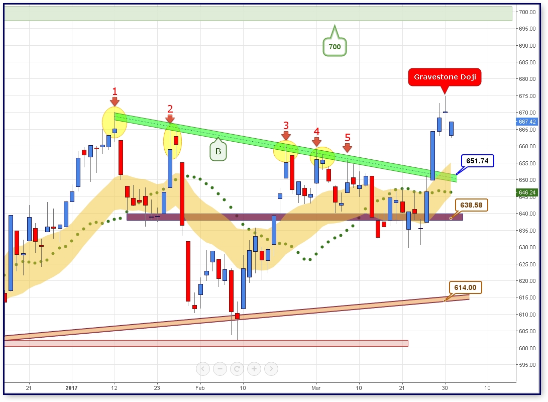 Διαγραμματικά εάν ο Γενικός Δείκτης δηλώσει στις επόμενες συνεδριάσεις ότι «κατέχει» την περιοχή πέριξ των 670 μονάδων το επόμενο επίπεδο αντίστασης εντοπίζεται στις 700 μονάδες με το πιο ουσιαστικό σημείο να βρίσκεται στις 730 μονάδες.