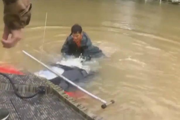 Χρειάστηκε να πέσει στα ορμητικά νερά για να απεγκλωβίσει μία γυναίκα από το αυτοκίνητό της, ενώ το όχημα είχε βουλιάξει, όμως επανέλαβε την ηρωική του πράξη για να σώσει και τον σκύλο της, ο οποίος είχε επίσης εγκλωβιστεί στο αμάξι.